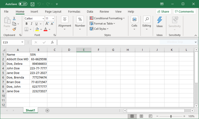 Just submit an Excel spreadsheet with the name (in one column with the column header 'name' or two columns with 'first name' and 'last name' as titles) and TIN/SSN. Other data can be included but all we need is the name and TIN/SSN. The information can be in any order – computers are great at just taking the information it needs.