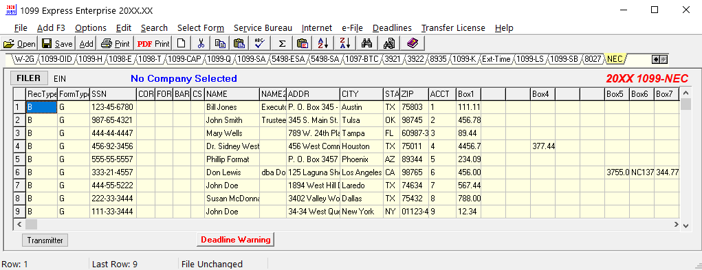 Note: Importing is designed to avoid re-typing data, which can be exported from an accounting or other system. If you plan to type your records manually, you may still use Excel. However, you may also use the option AddF3 in the 1099 Express program which will validate each record as it is typed.